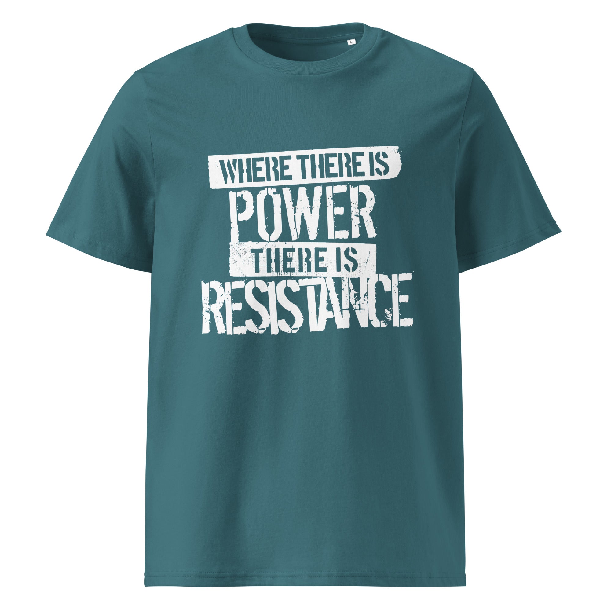 Our T-Shirt of the Month for October 2025, made of 100% organic cotton, and supporting grassroots labour unions in South Asia. Outside the US, this design is available here a shirt made by a workers' cooperative.