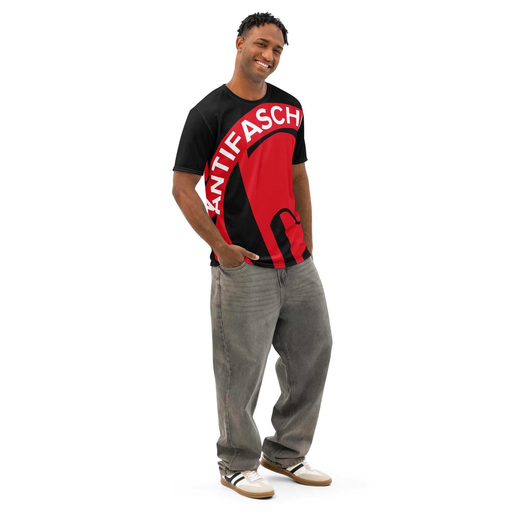 This unisex-fit cotton t-shirt is soft and midweight, and depicts an oversize version of the original 1930s logo of German anti-Nazi organisation, Anti-Fascist Action.