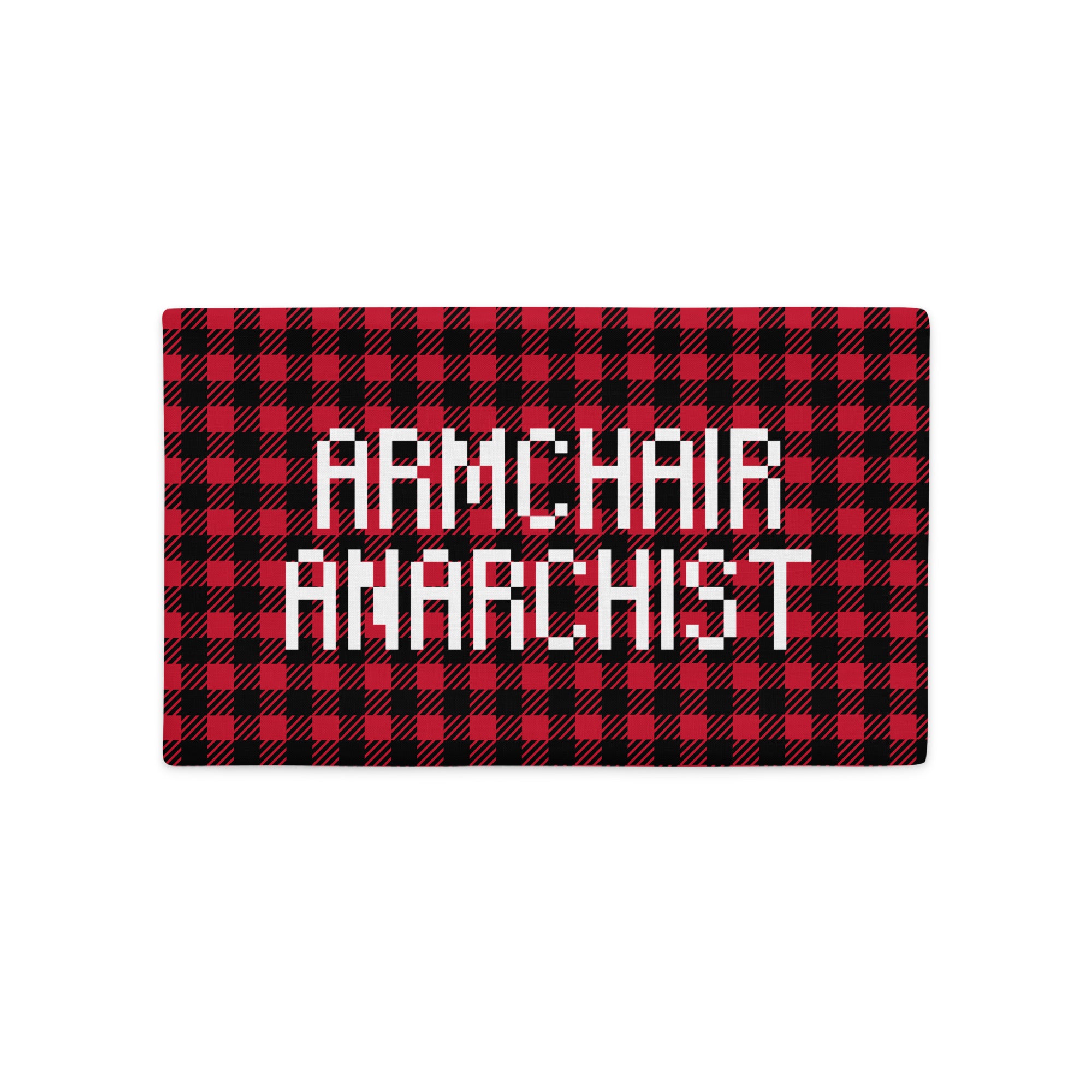 Premium feel zipped pillow/cushion case, on a red and black check design, for armchair anarchists, or anarchists' armchairs (or sofas or beds)! This product is only the pillowcase - pillow filling not included. Also available with pillow filling, or in green and black.