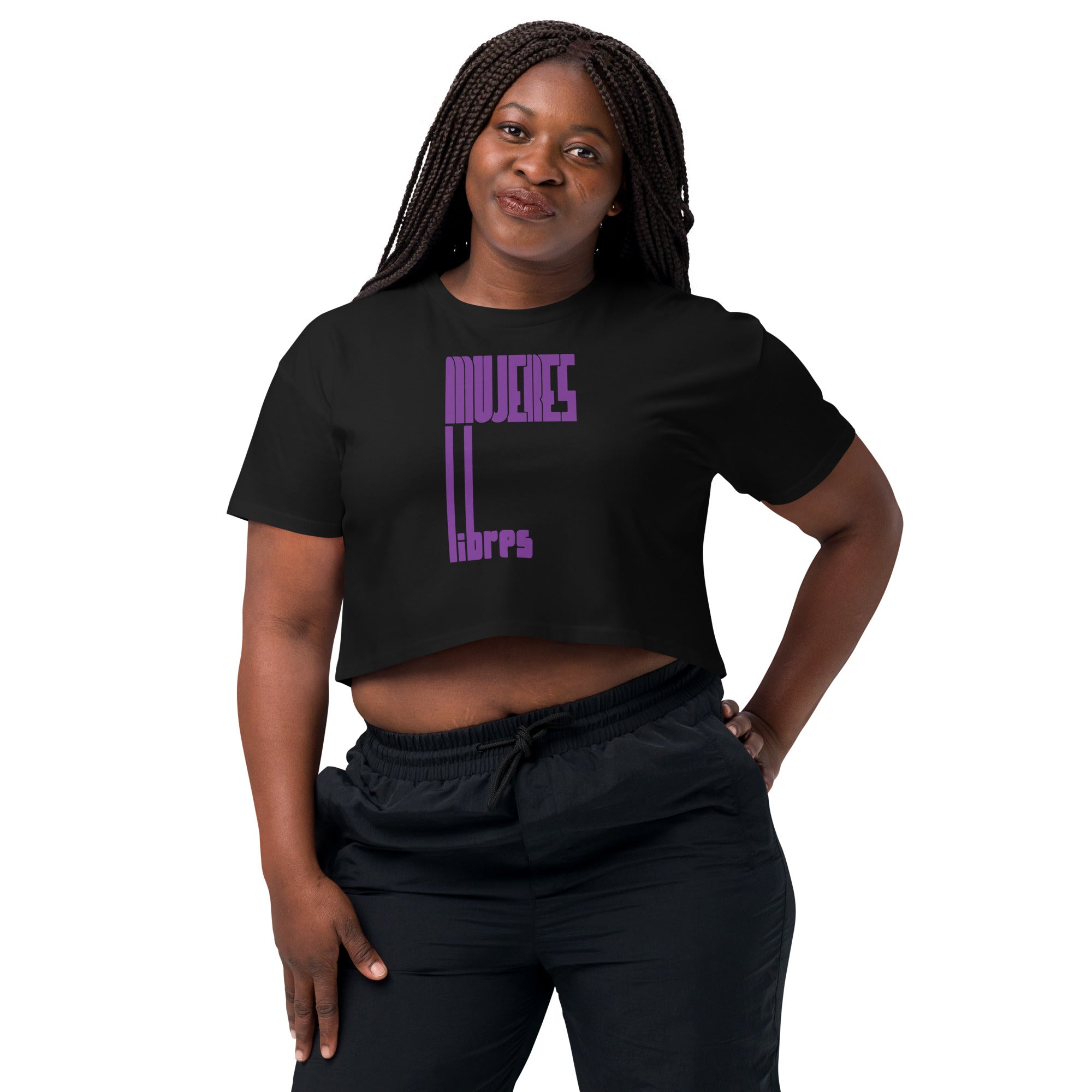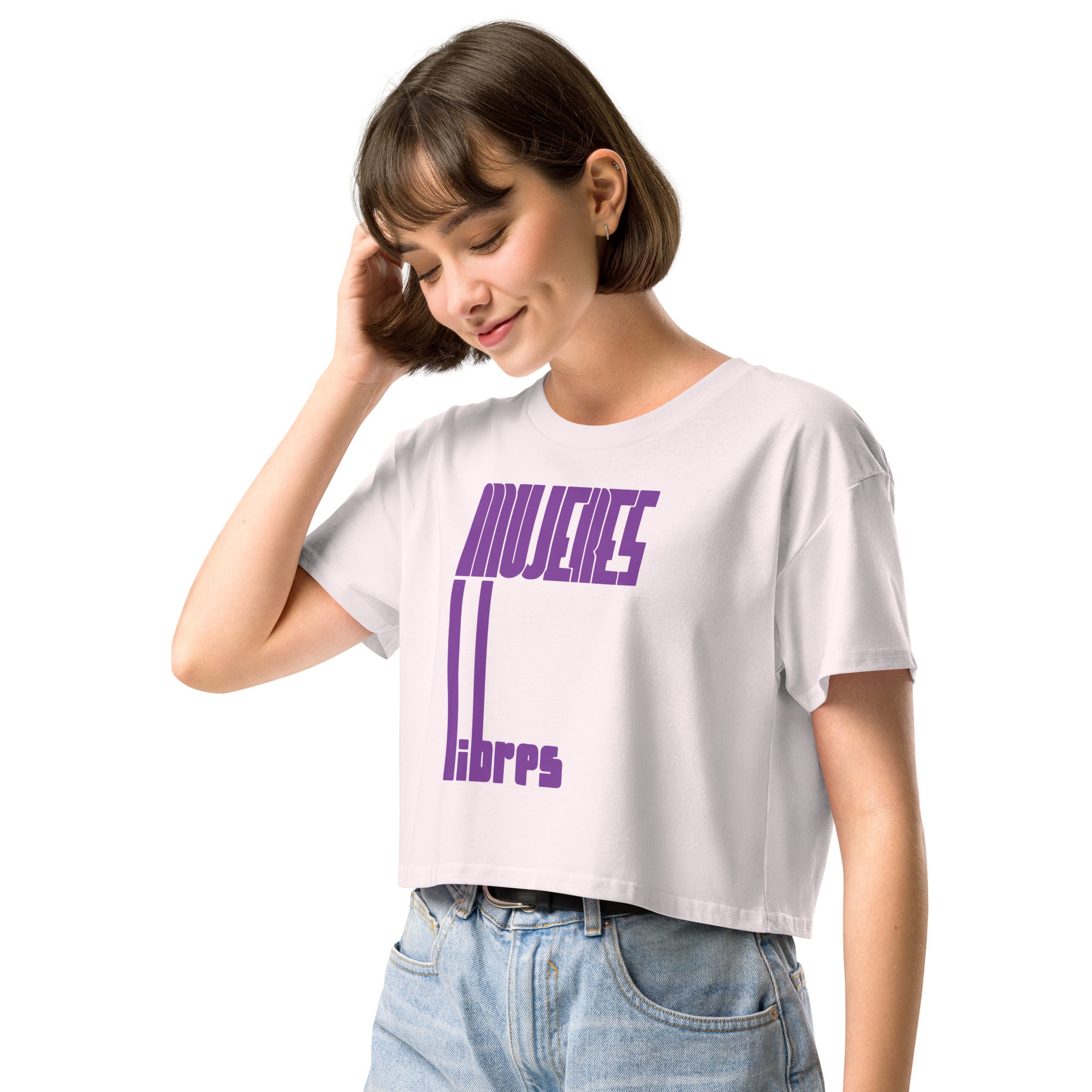Crop top made of 100% combed cotton, which makes the shirt extremely soft and more durable than regular cotton shirts, with a relaxed fit and dropped shoulders. Featuring the logo of Mujeres Libres (Free Women), an anarchist feminist group set up in Spain in May, 1936, to fight the "triple enslavement of women, to capital, to illiteracy and to men". They played a key role in the Spanish civil war and revolution 1936-9.